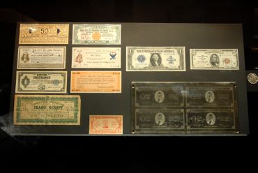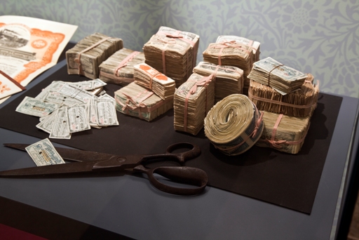 This exhibit traces our country's currency from the earliest years through the latest designs and features barter currencies, gold, coins, paper money and scrip. A tactile money display allows visitors to touch historic and modern coins, and to view the security features in modern money on a light board and under an ultraviolet light. A large-scale touch screen interactive enables visitors to view the many hidden anti-counterfeiting devices incorporated into the newly-redesigned $10 bill.