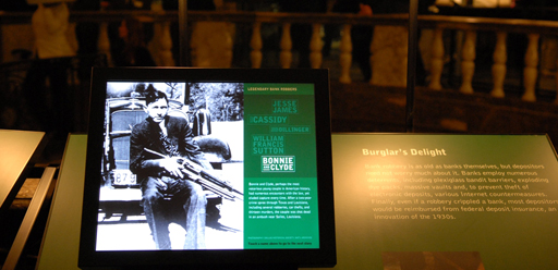 From the establishment of the Bank of North America in 1781 to the creation of the newest community bank, and from the largest universal bank to the humblest credit union, depository institutions – commercial banks, savings banks, credit unions – have been and likely will remain crucial components of the financial system and the larger economy. Without them, people would find it difficult to pay their bills, corporations could not be extended various forms of credit, and federal and local governments could not operate. This exhibit explores the history of banking in America and explains the different types of banks and bank accounts. It also features multi-media sidebars on bank robberies, credit cards and the infamous S&L crisis, as described in the classic movie It's a Wonderful Life, as well as a display of historical piggy banks. "Banking In America" allows visitors to learn about The Federal Reserve Bank system, how the payment of a check makes its way through the banking system, and what's really in those contracts that we agree to when we sign up for a credit card.